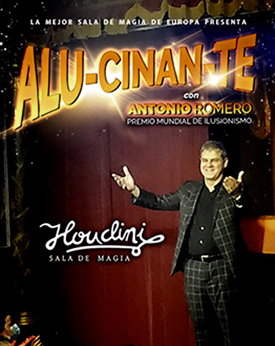 La SALA HOUDINI, la mejor sala de Magia de Europa, presenta: Alucinante, un show original y único en un lugar inigualable por todo un Premio Mundial de Ilusionismo: Antonio Romero.rnrnNo dejes pasar la oportunidad de asistir a un show ALUCINATE donde todo el mundo disfruta y en el que se destila la mejor magia con grandes dosis de humor y participación. Pon en marcha tu imaginación y déjate llevar de la mano de todo un campeón del mundo del ingenio, en un lugar mítico de Madrid, la Sala Houdini, un auténtico museo de la magia lleno de encanto y misterio. El mejor lugar para disfrutar de una actuación de magia ALUCINANTE.rn