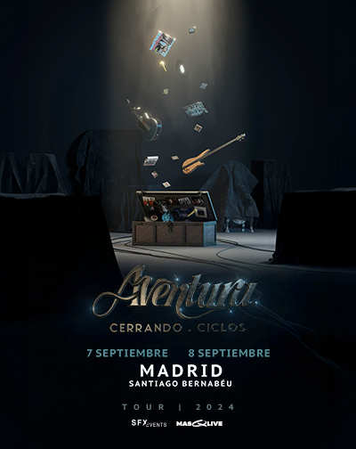 Compra tus entradas para el Concierto de Aventura que se va a celebrar en el Estadio Santiago Bernabeu de Madrid.rnrn rnrnORGANIZADOR FECHA 07/09/2024:rnrnVIVE LA MÚSICA SFX 2, AIE – V56934110rnrnORGANIZADOR FECHA 08/09/2024:rnrnLIVE TOUR SFX EVENTS 7, AIE – V70873708rn