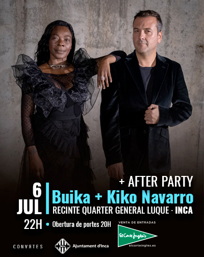Adquiere entradas para el concierto de Buika + Kiko Navarro que tendrá lugar en el Quarter General Luque de Inca. Después del concierto habrá un After PartyNORMATIVA ACCESO DE MENORES A LOS CONCIERTOSLos menores entre los 16 y los 17 años, habiendo pagado su entrada, podrán acceder al recinto en las mismas condiciones que los adultos sin necesidad de ir acompañados. Imprescindible presentar el D.N.I. original para poder acreditar la edad.Menores de 16 años:Los menores de 16 años podrán acceder acompañados de madre o padre. Así mismo, será necesario que los padres posean una entrada válida. Deberán acompañar al menor en el interior del recinto, sin que sea posible su estancia de forma individual.Durante su estancia en el recinto, los padres serán responsables de cualquier acción que el menor realice. Para que esto sea posible es necesario presentar a la entrada del recinto la siguiente documentación: DNI o pasaporte de ambos.La falta de cumplimiento de los requisitos anteriores, serán motivo de expulsión del recinto y no darán derecho a reembolso alguno del precio abonado por la entrada del menor.